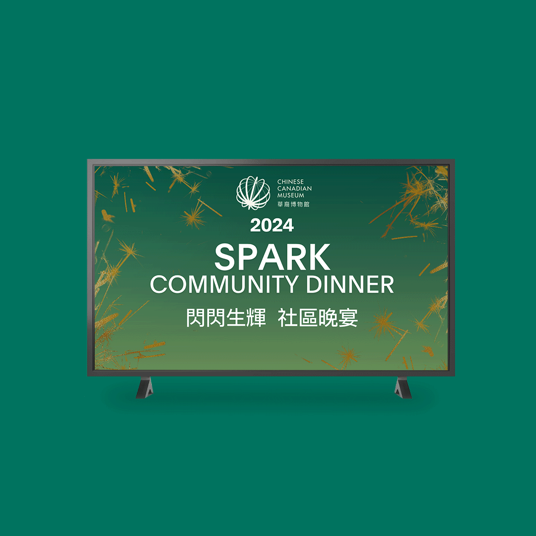 A slide deck was created to be displayed in the background at the Chinese Canadian Museum's annual Spark Community Gala fundraising event.